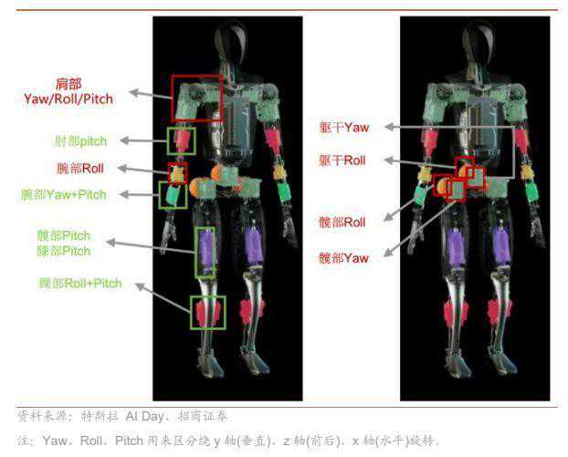 价值量分布参考特斯拉Optimus,人形机器人价值量主要分布在FSD系统、AI芯片、执行器、灵巧手肢体骨骼这几个部分: