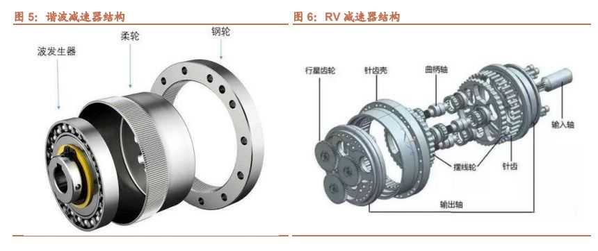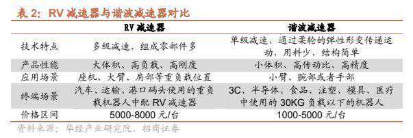 机器人减速器主要分为RV减速器和谐波减速器两类。谐波减速器具有单级传动比大、体积小、质量小、运动精度高等优点,并且能在密闭空间和介质辐射的工况下正常工作,更适用于轻负载精密减速领域,如人形机器人等。相比谐波减速器,RV减速器具有传动比范围大、精度较为稳定、疲劳强度较高等优势,还有着更高的刚性和扭矩承载能力,主要适用于机器人大臂、机座等重负载部位。