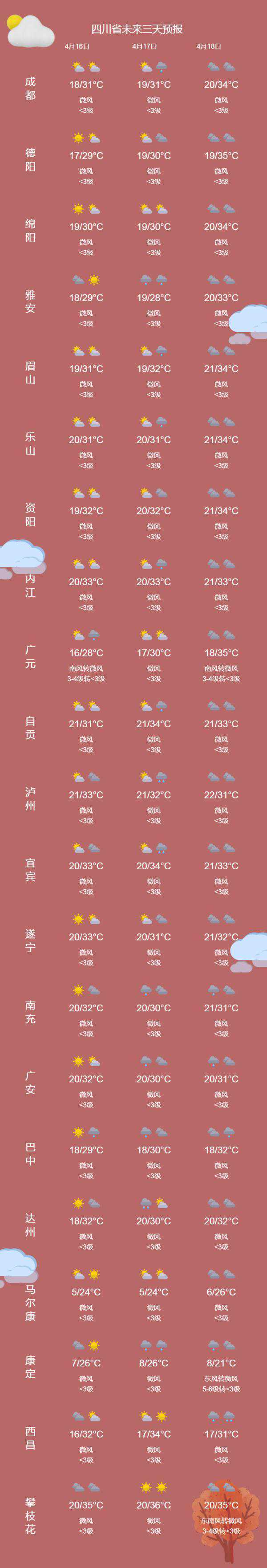 17日四川18市州将热到30℃+