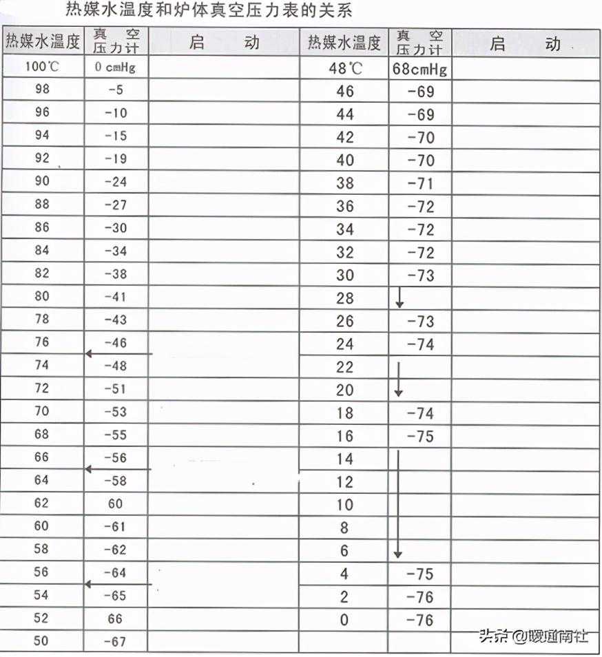 2.热媒水温度对应的真空表数值应与说明书中的真空度对照表数值接近;
