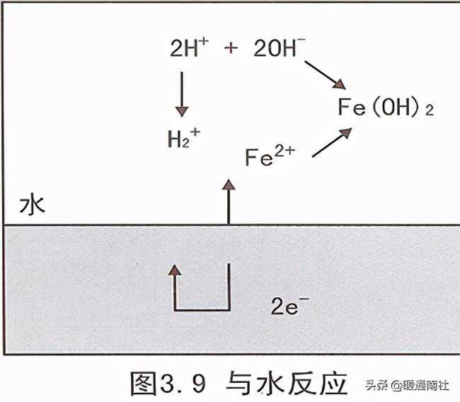 同水接触的钢铁的组织不均匀,有离子化倾向高的区域和不高的两个区域。