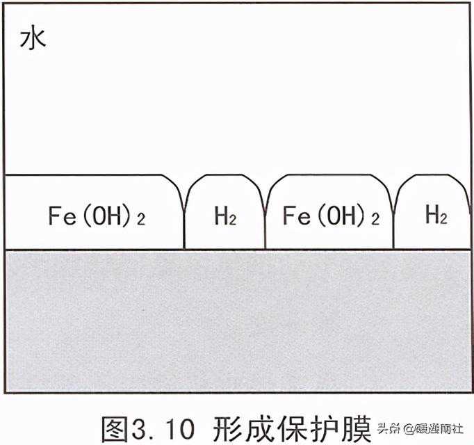 在阳极产生的铁离子同氢氧负离子结合产生氢氧化铁,氢氧化铁在钢材表面产生一种保护膜。