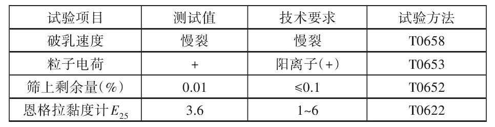 本文采用SK90#作为基质沥青制备得到BE-4型乳化沥青,技术性质见表2。