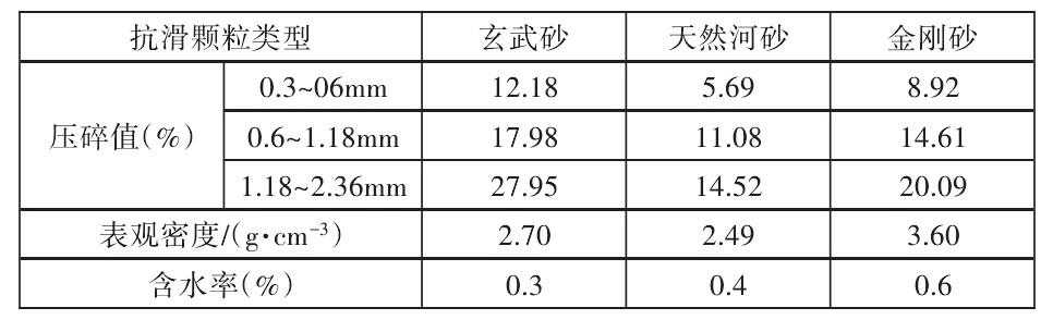 本文选用玄武砂、天然河砂及金刚砂3种硬质颗粒作为抗滑材料。3种抗滑颗粒技术性质见表4。