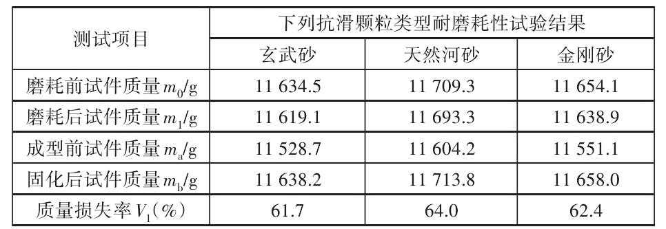 表5不同类型抗滑颗粒成型试件的耐磨耗性试验结果下载原图