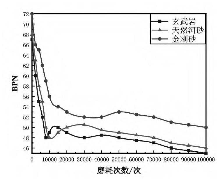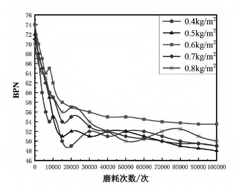 图4不同掺量金刚砂成型试件的BPN磨耗规律下载原图