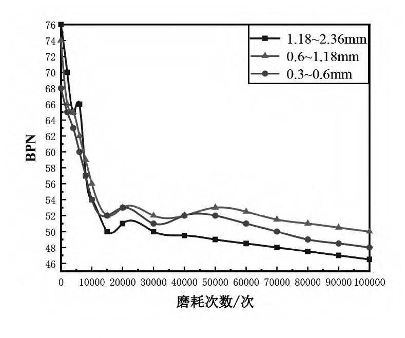 图2不同粒径金刚砂成型试件的BPN磨耗规律下载原图