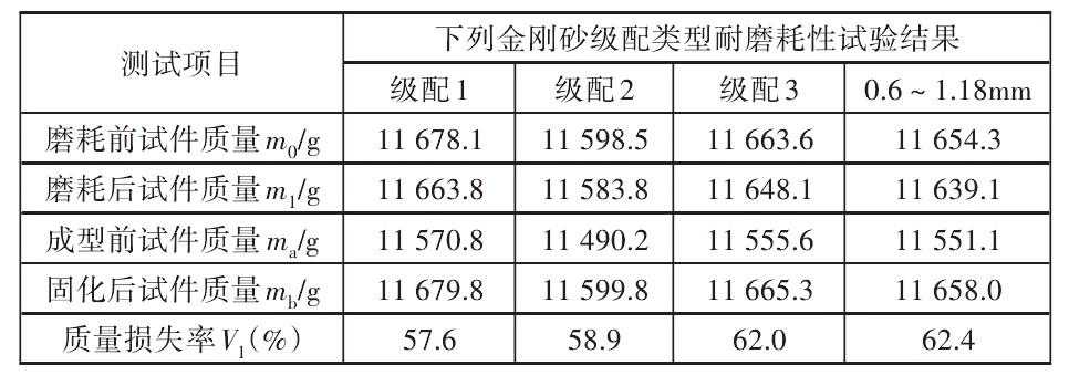 表8不同级配金刚砂成型试件的耐磨耗性试验结果下载原图