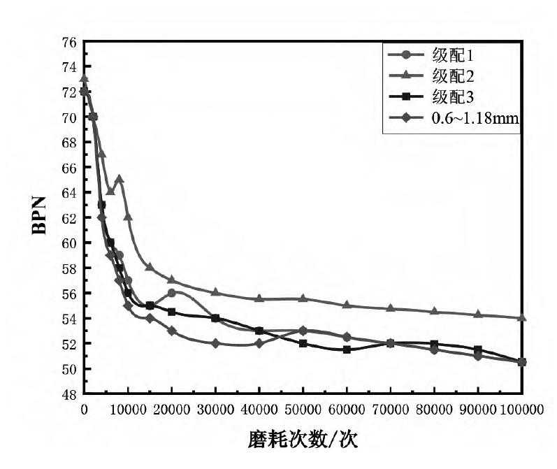 图3不同级配金刚砂成型试件的BPN磨耗规律下载原图