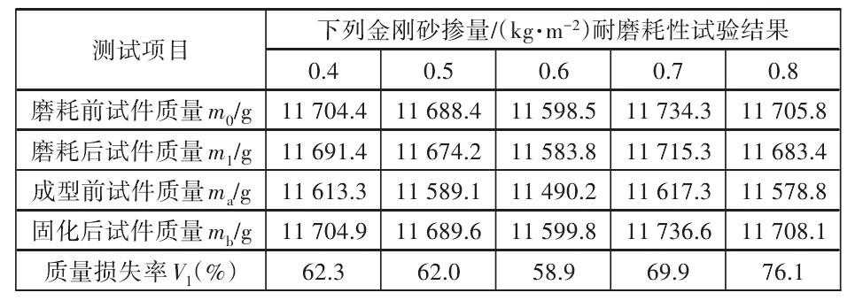表10不同掺量金刚砂成型试件的耐磨耗性试验结果下载原图