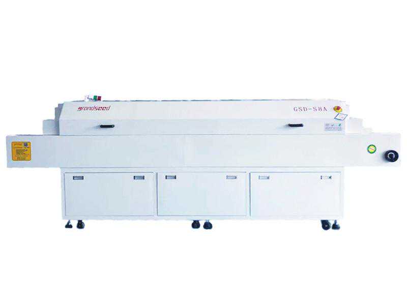 小型八温区回流焊温度设置根据焊接材料和焊接工艺要求进行调整。广晟德下面分享一下小型八温区回流焊,在焊接锡膏和红胶板时的温度设置。