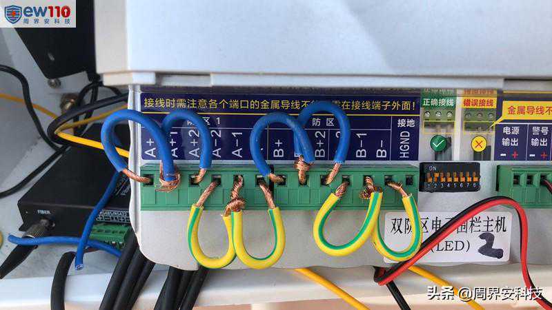 如果主机短接后正常,则判定为故障在电子围栏前端围栏上,找到故障防区,去掉故障防区的一组短接线,然后接到前端围栏上,则可检测哪个回路发生故障。(一回路主机内短接,一回路接前端围栏),如果前端部分依然报警,则是前端的问题,反之若短接的回路依旧报警,则是主机故障,此时需和销售联系售后解决。