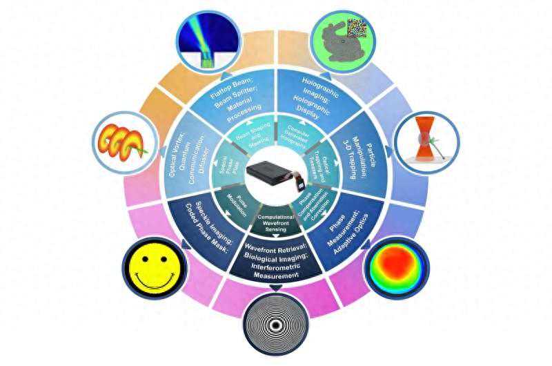 最重要的是,“图片”是可重写的,用于现实世界应用程序的按需实时解决方案。例如,全息光镊允许光物质相互作用仅通过改变图片(计算机生成的全息图)来控制,实时刷新以捕获、夹持和操纵3D物体。这已经在物理、化学、医学和生物学等不同领域得到了直接应用。