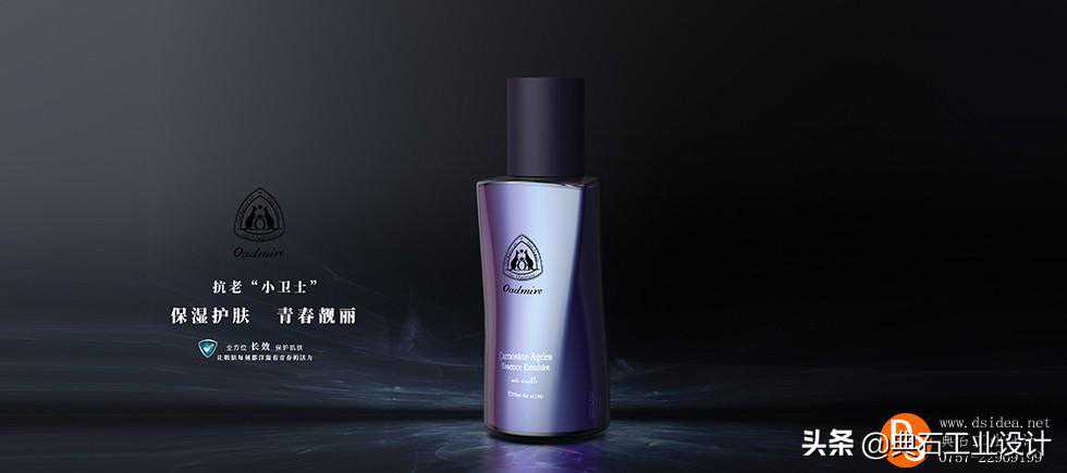 常见的瓶型设计有矿泉水瓶型设计,白酒瓶型设计设计,饮料瓶型设计设计,化妆品瓶型设计设计,食用油瓶型设计设计,洗衣液瓶型设计等。不同的商品对于瓶子的材料和质量的需求也是不同的。比如护肤品的瓶子多是采用玻璃瓶制作的,而饮料瓶则大多数是采用塑料瓶来制作的。此款精华液瓶型设计结合品牌文化特点及商标特征做出设计。外观简约时尚,配色精致细腻,曲线圆润,采取非通体一致的形状,上端“三角”突出品牌特性,下端变换设计:考虑用户握持体验,渐消面处理过度自然。整体视觉呈现上与市面产品做出了差异化,又形象的强调了品牌文化。