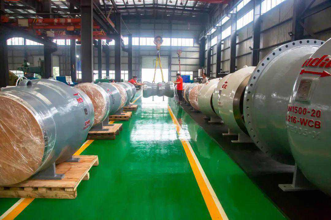 该公司以特种阀门著称的,经过20多年的发展,国产替代工作取得了良好的成就并在特种阀领域享有较高的美誉。公司主要研发成果及产品有:轴流式止回阀、强制密封球阀、压缩机防喘阀、水击泄压阀和旋启式通球止回阀等,在技术上取得了不俗的成就。例如,该公司的轴流式止回阀在流态控制,密封水平、使用寿命等关键技术指标实现了对欧美产品的反超。在中俄油气管线,西气东输各线,古雷石化等著名工程长时间广泛应用后,获得客户高度认可。其中,轴流式止回阀、强制密封球阀在管线和加氢等细分领域市场占有率稳居第一位。下图为自贡新地佩尔阀门车间陈列的轴流式止回阀照片。
