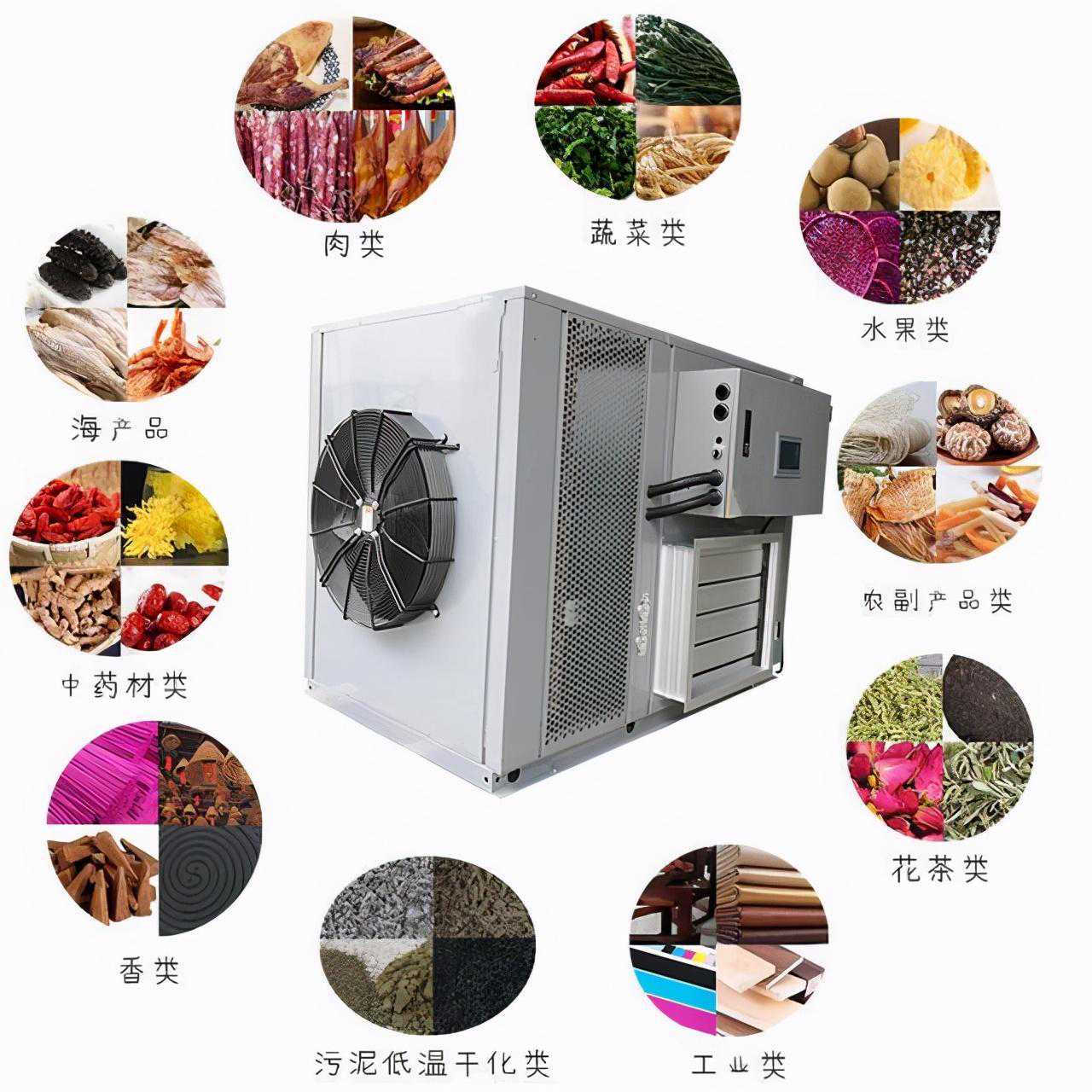 一种节能型空气能热泵干燥机,其工作原理是压缩机通过吸收空气中的热量不断为干燥室提供热能(干燥室可调温度为:温度10-80℃)在精确的温湿度控制器控制干燥室内的温湿度,完全不烧煤、不烧木材、不烧木炭、不烧锅炉、不蒸汽。热泵中草药干燥机只需要少量的电力来驱动压缩机就能得到所需的高温热量,整机安全卫生,环保,无污染,无废气排放,运行超低电,是一种节能环保的药品干燥溶液。