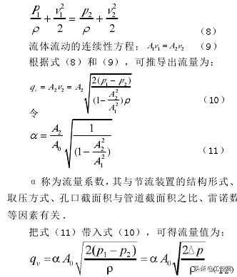 流体流经节流装置时,不对外做功,没有外加能量,流体本身也没有温度变化.在管道内流动的流体,对于管道中任意两个截面都符合伯努利方程,现选截面Ⅰ和Ⅱ(见图2)进行分析。流体的伯努利方程: