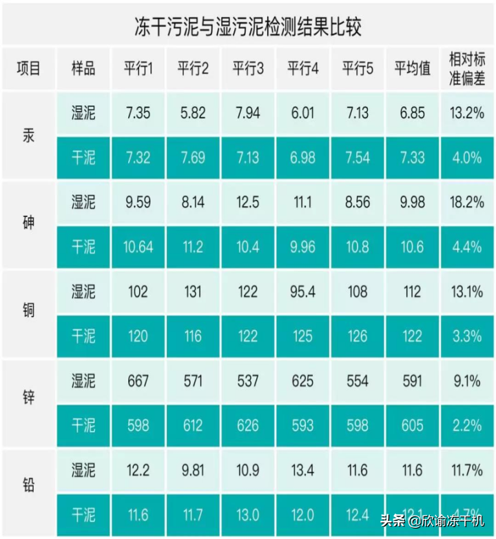 3.污泥冻干后测定重金属,可以避免含水率导致的结果偏差