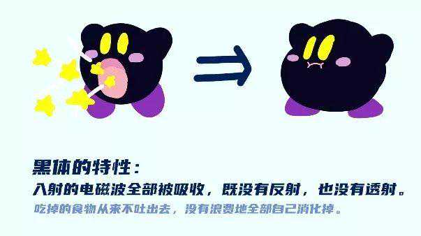 这个时候我们派出小编的好朋友卡比出场。假设“黑卡比”就是一个标准的“黑体”,它的特性是:入射的电磁波全部被吸收,既没有反射,也没有透射。