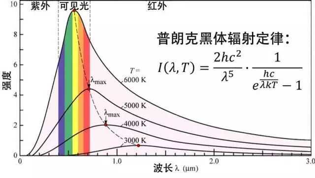 我们只要看懂一点,就是——高温度下的黑体辐射强度,在任何一个波长范围内,都高于低温度下的黑体辐射。