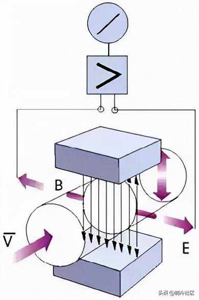 电磁流量计的测量原理是基于法拉第电磁感应原理定律:导电液体在磁场中作切割磁力线运动时,导体中产生感应电势,其感应电热E为: