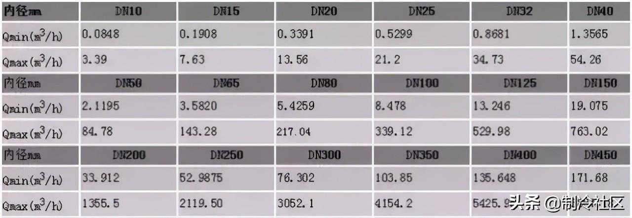 3、最大流量和最小流量,必须符合下表中的数值