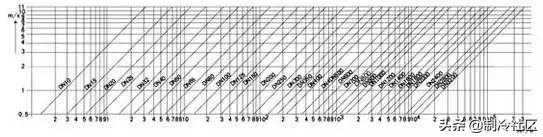 电磁流量计内径、流速与流量关系曲线图