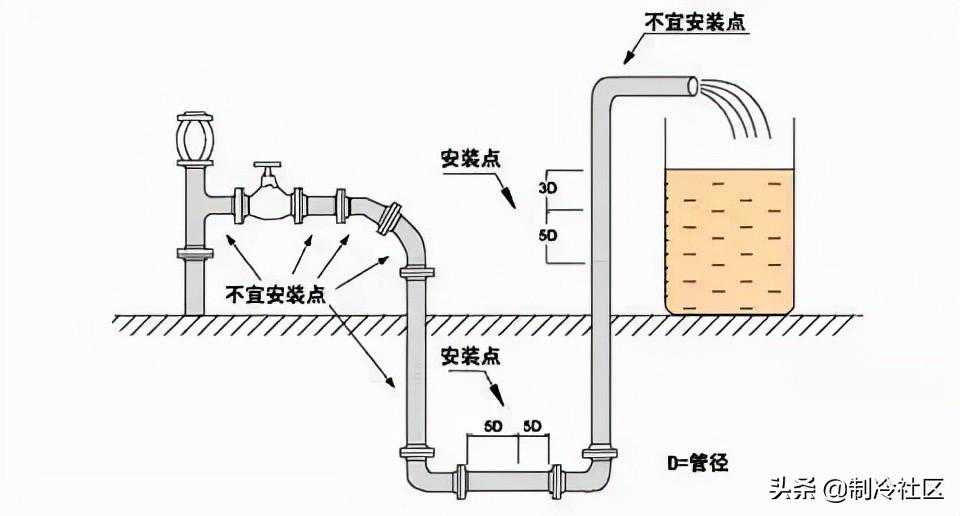 2、电磁流量计测量位置应选在上游大于5D和下游有3D直管段处。