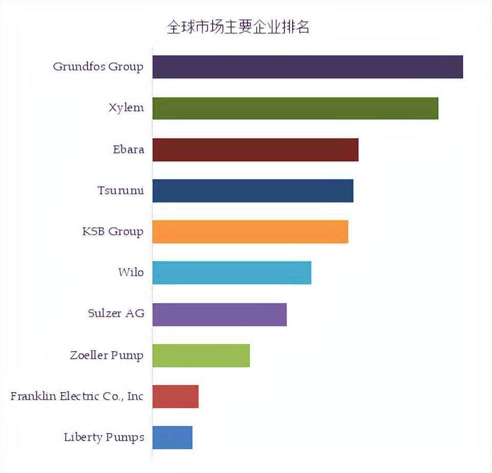 全球范围内,污水潜水泵主要生产商包括GrundfosGroup,Xylem和KSBGroup等,其中前五大厂商占有大约51.54%的市场份额。
