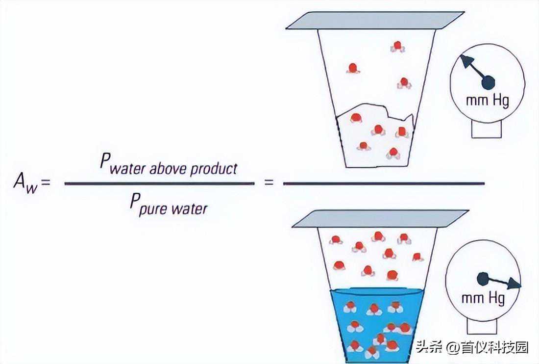 乳膏剂中的水分一般以结合水和非结合水的形式存在,只有非结合水能被微生物生长、繁殖和孢子萌发所利用。水分活度反映乳膏剂中微生物新陈代谢可利用水(非结合水)的量度,通常用水分的饱和蒸气压和纯水饱和蒸气压(相同温度下)的比值表示,数值为0~1。