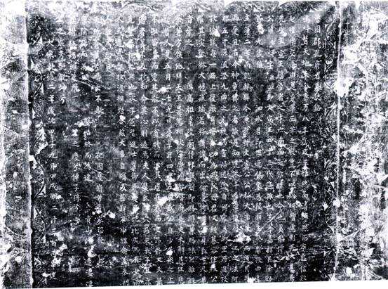 2008年的夏初,曲阜市文物局对孔氏中兴组——孔子第四十三代嫡孙孔仁玉的墓塚进行了修葺时,发现墓后室的券顶已经被揭开,随即派专业人员进入墓室查看。在墓室中,寻找到一块墓志石——孔仁玉《鲁国郡“孔府君”墓志铭》,这是墓室中唯一存留的遗物。这块墓志为单体制石,高64厘米,宽65厘米,厚13.5厘米,四边内侧阴线刻以缠藤花卉,外侧阴线刻多位身着朝服、表情安详,看似圣贤的坐像,中刻铭文: