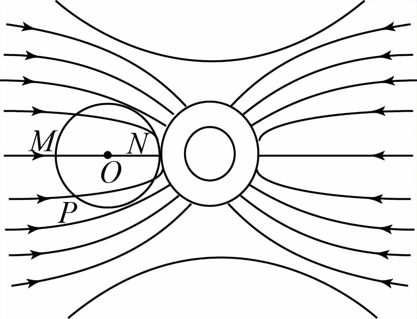 1.如图所示为一空腔导体周围的电场线分布图,电场方向如图中箭头所示,、、、是以为圆心的一个圆周上的四点,其中、在一条直线电场线上,、在一条曲电场线上,下列说法正确的有