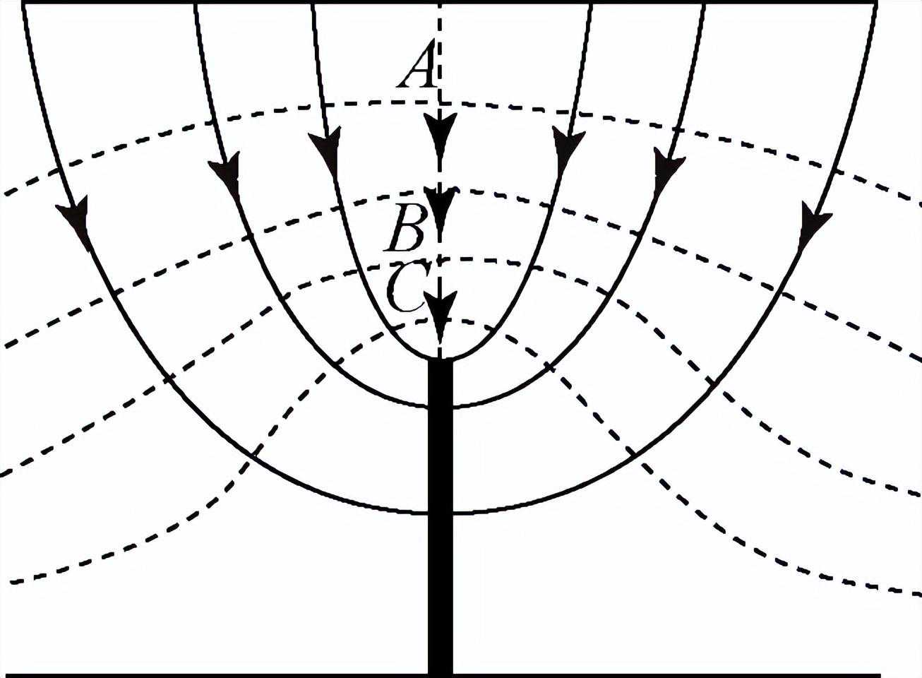 3、匀强电场中只要找到两个电势相等的位置,连线就是等势线(面),垂直方向为场强方向,由高电势指向低电势。