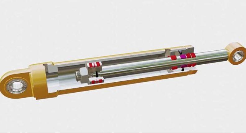 液压缸通常由端盖、缸筒、活塞杆、活塞等部件组成,为防止漏油,液压缸各部位都设置有密封圈,液压缸端部设置缓冲装置。