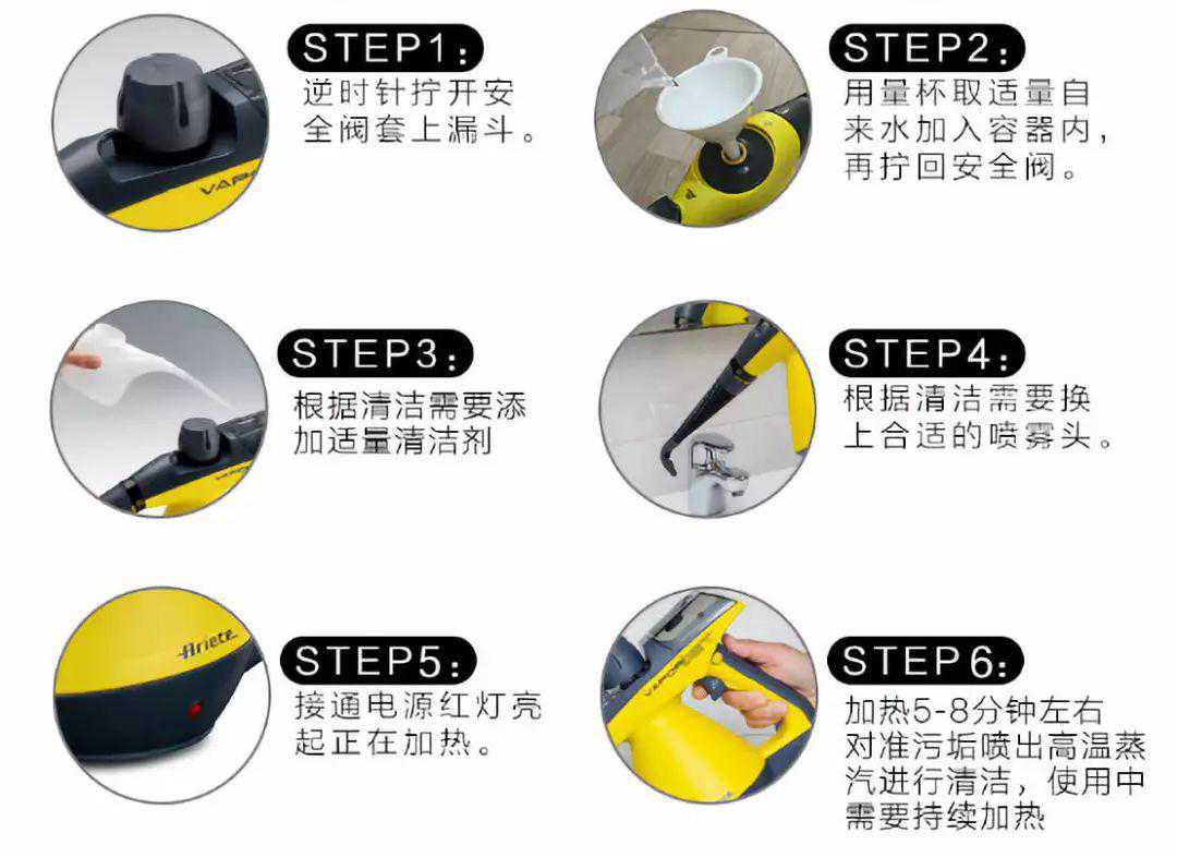 注意事项:清洁结束以后,要把机器冷却一段时间后,再放水,这样既安全,又能延长使用寿命哦。