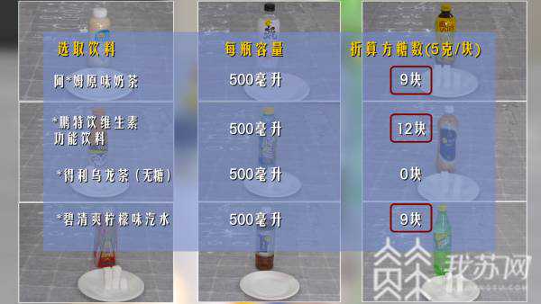 实验以方糖的形式展示给大家,希望在以后选择饮料的时候多加注意,多看看营养成分表及糖分的多与少。尤其是功能型饮料,虽然含有一些维生素和矿物质,但是对于坐办公室,或者是出汗不太多的这部分人群来说,有的时候也会引起血压的升高,因为身体并没有排出这些电解质,额外地补入,对于血管、血压都是不利的。
