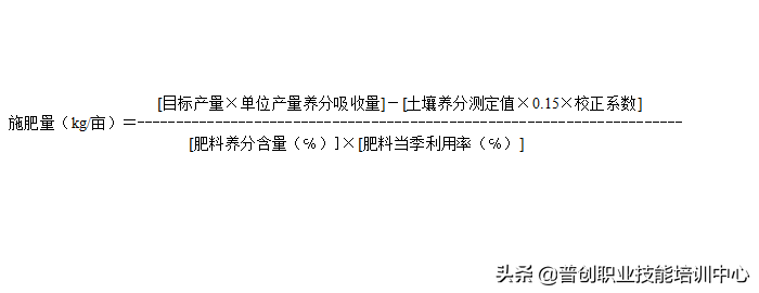 2、养分平衡法:养分平衡法计算施肥量的根据是肥料养分供应量及土壤养分供应量之差等于目标产量所需吸收的养分量。其肥料用量计算公式如下: