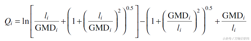 其中Li是段i的自感,Mij是它们之间的互感;段i和j,li是片段i的长度,μ是导体的导磁率,T是频率校正因子,d是导体细丝之间的距离,w是导体的宽度,t是导体的厚度,Qi是片段i的互感参数,GMDi是片段i的几何距离,AMD是算术平均距离。