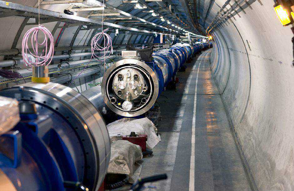 如图,欧洲强子对撞机内部一角。