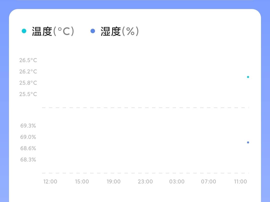首先,通过蓝牙连接我们看到了当前室内的湿度与温度;其次,米家APP上有一个温湿度的变化曲线,可以是一天的变化也可以说一周甚至一个月的变化,非常直观;