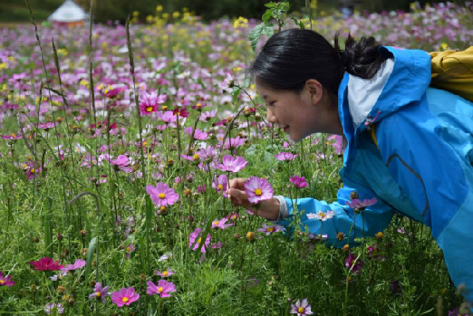 9月2日,离香格里拉市区约20分钟车程的建塘镇诺西村易司村小组,公路边一处格桑花海格外惹眼。行经此地的许多游客都被这一望无际的花海所吸引,纷纷驻足欣赏,或感叹美景,或拍照留念,笔者也被这美景折服,与其他游客一道穿梭在花海之中尽情享受。
