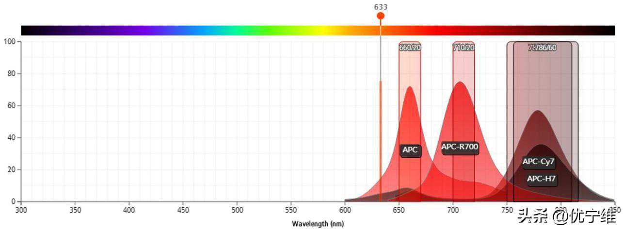 BDHorizonBrilliant紫外线染料溢出到每条激光线上的通道中。该表显示了染料的相对溢出值,因为获得的溢出值可能因所使用的过滤器和PMT电压而异。