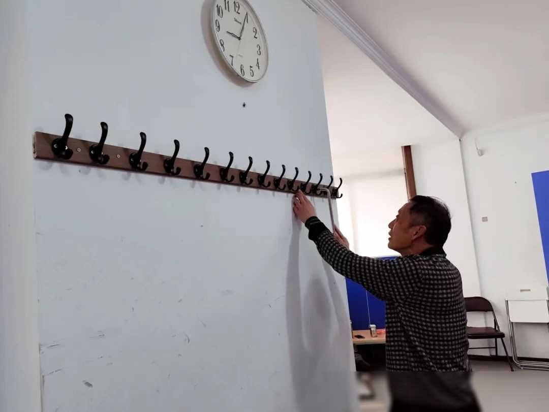 除了墙面的改造,乒乓球室还面临着其他问题,比如乒乓球是白色,墙面也是白色,打球时经常眼花看不清球;冬天穿羽绒服来活动,厚衣服没地方放。在议事会上,居民们齐心协力,提出了解决方案。他们决定自筹资金,为球室贴上蓝色墙纸,解决光线太亮的问题,并在室内安装挂衣钩,解决衣物存放问题。