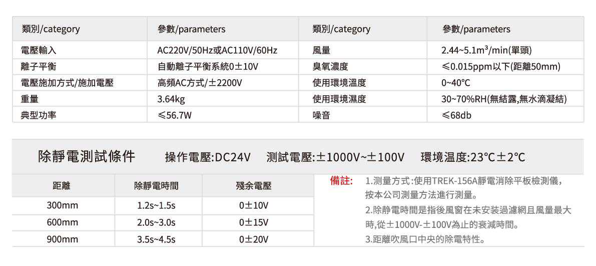 ③可根据工作台及产品尺寸选择不同长度的离子风机。