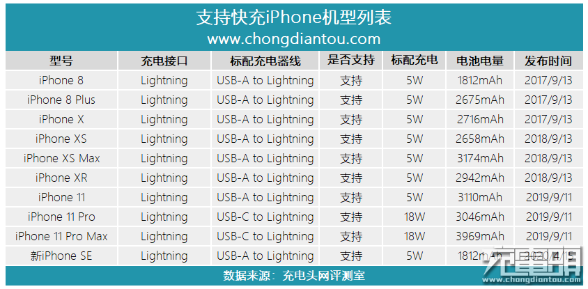 据充电头网统计,从iPhone8开始,每款手机都已经支持18W快充,但是除了iPhone11Pro以及iPhone11ProMax外,无一例外都标配祖传的五福一安充电器,因此可以说市场对18W充电器的需求量无比巨大,未来的新iPhone系列手机也会继续推动18W快充市场的发展。