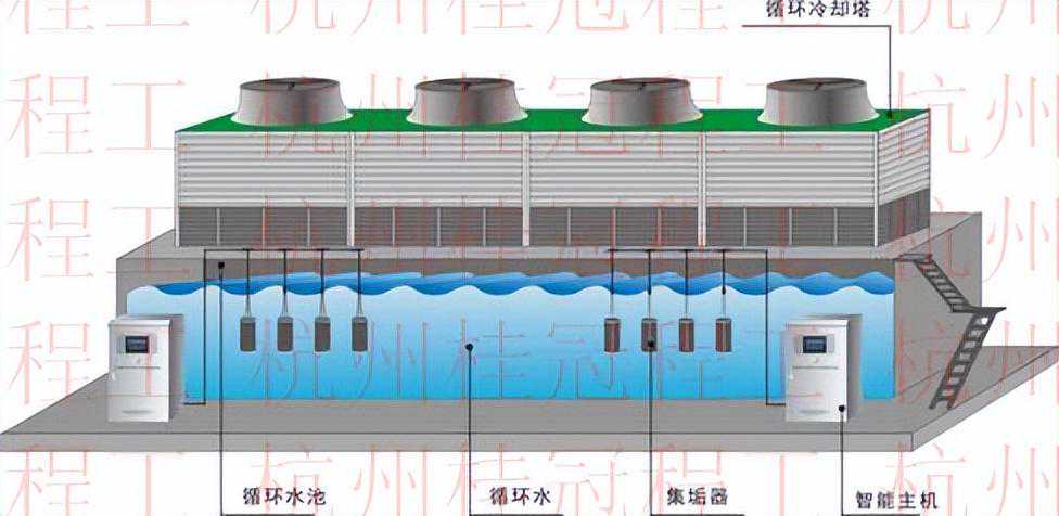 冷却塔吸垢器:与中央空调系统等分离式安装,只需接上电源,把收集器放进冷却塔中即可,拆装方便。