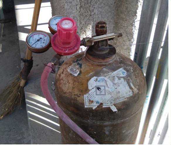 四、化工厂,氩气瓶气管使用铁丝绑扎固定。