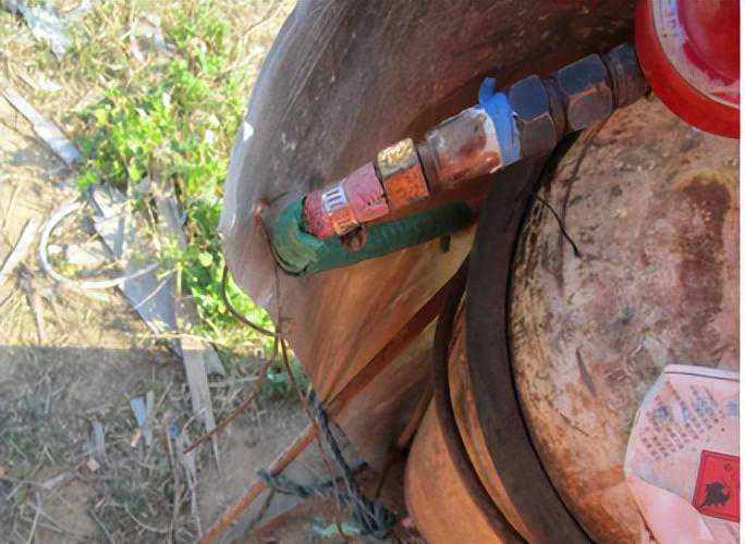 六、化工厂,现场乙炔瓶使用的气管老化开裂。