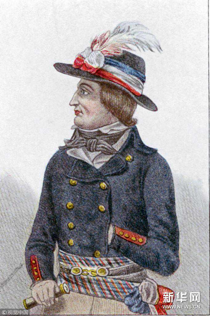 18世纪,法国国民公会的成员卡诺。他头戴一顶插着羽毛的帽子。