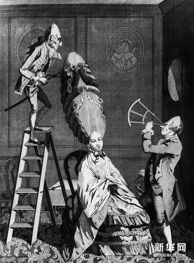 1750年,十八世纪的皇亲国戚们,除了爱高帽外,更是崇尚编发和假发(BigHairStyle),据说当时专业的编发工人,会依据业主需求先打造发梯,再沿着竹梯一路编起来。编完后,才在上面设计适当的帽子和装饰,比如菜篮、水果或帆船之类。